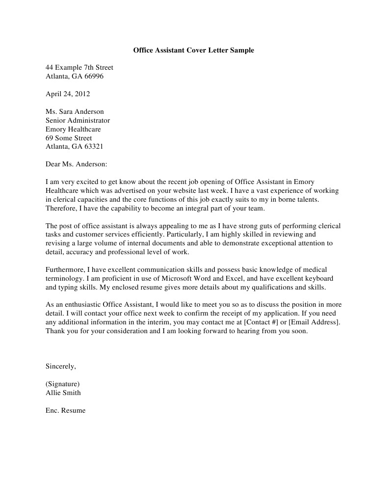 Our office assistant cover letter sample and writing tips will help you put together the perfect office assistant job application. Office assistant cover letter sample 2. You need to keep the office running efficiently. I can't claim office assistant experience. This letter and the attached is a strong expression of interest in the office assistant position at soft tech.
